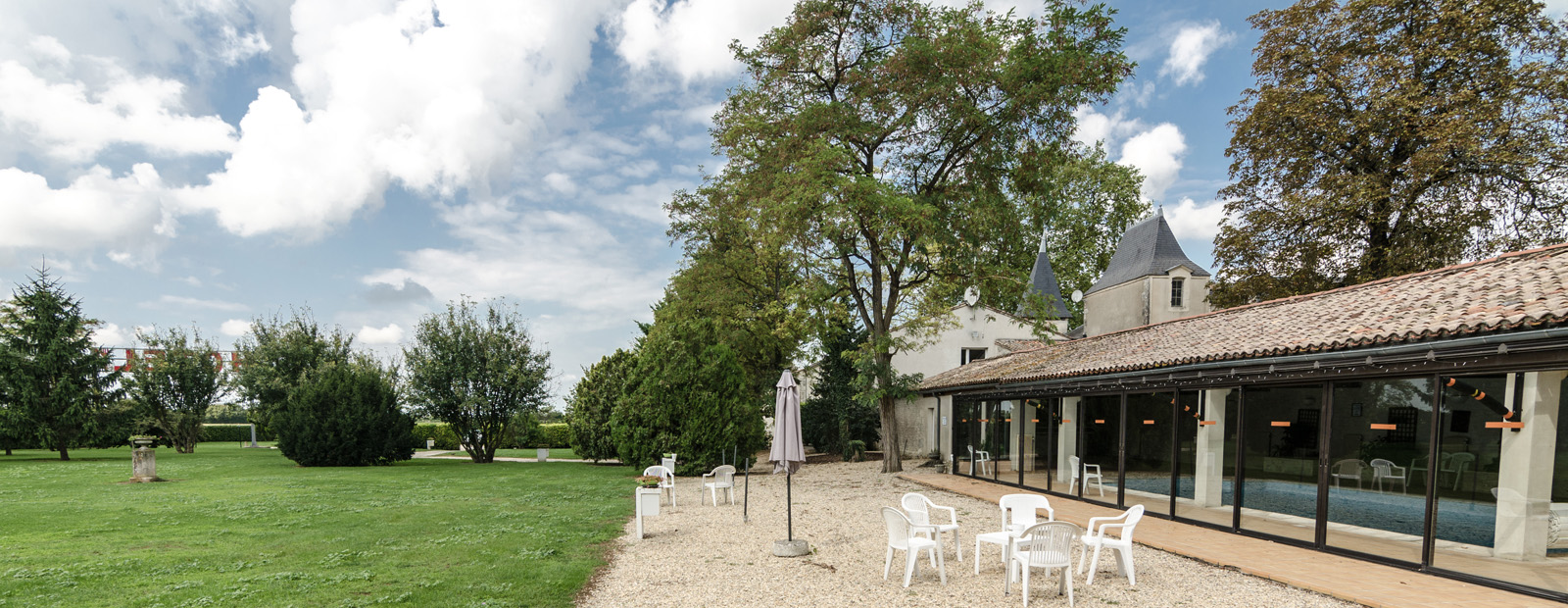 La salle des chais, la salle du logis, l’espace piscine.